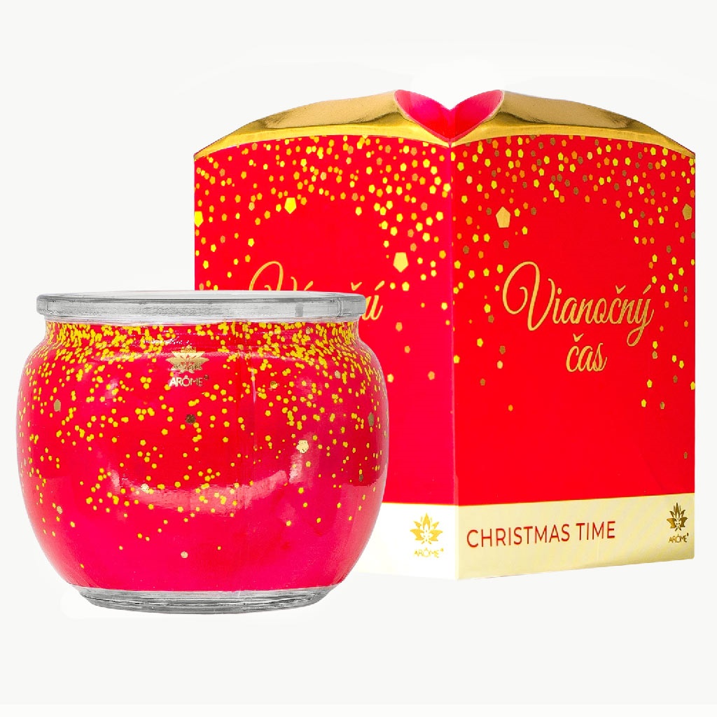 Plamienok sviečky umocní slávnostné vianočné chvíle a vianočne zdobená sviečka bude aj krásnou dekoráciou. Vonná sviečka Christmas time v skle je balená do darčekovej krabičky s vianočnými motívmi as viečkom tvarovaným do kvetu