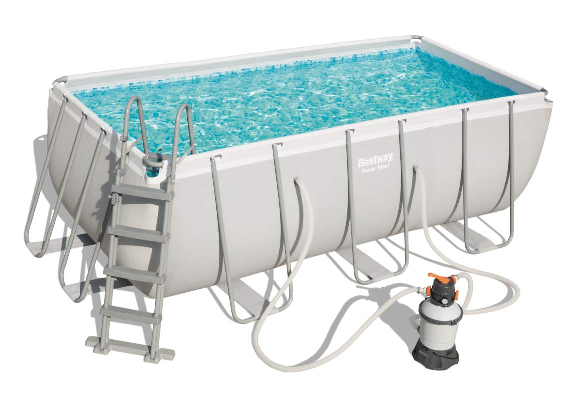 Bazén Bestway 4,12 x 2,01 x 1,22 m so zosilnenou konštrukciou POWER STEEL. Bazén v súprave s pieskovou filtráciou a schodíkmi