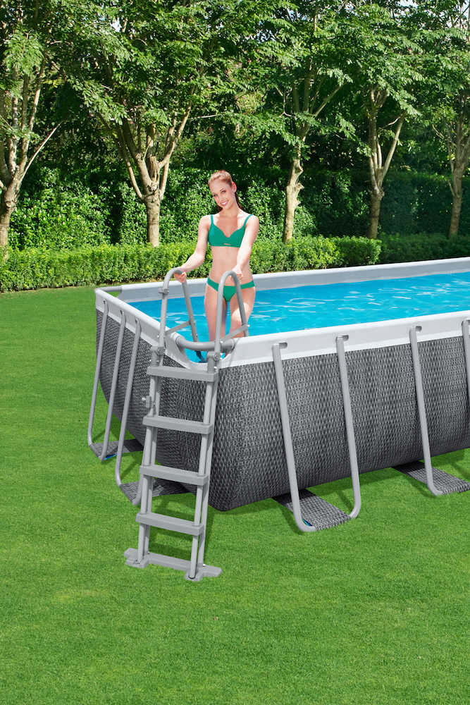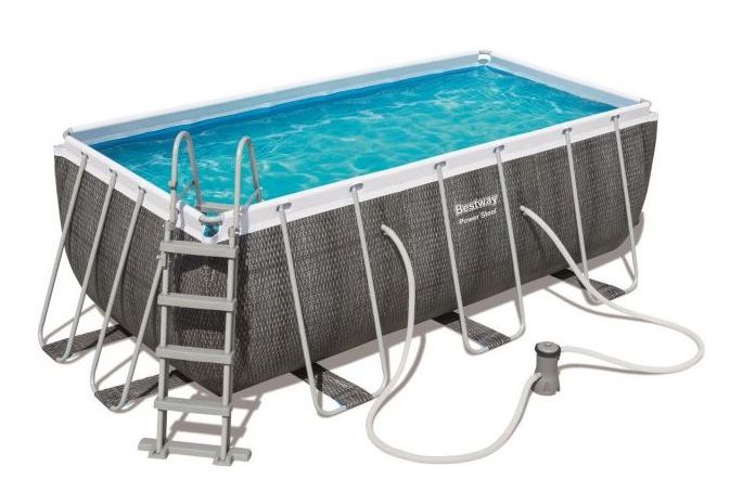 Obdĺžnikový bazén Bestway Power Steel Rattan 4,12 x 2,01 x 1,22 m. Kompletná súprava: bazén, kartušová filtrácia, schodíky.