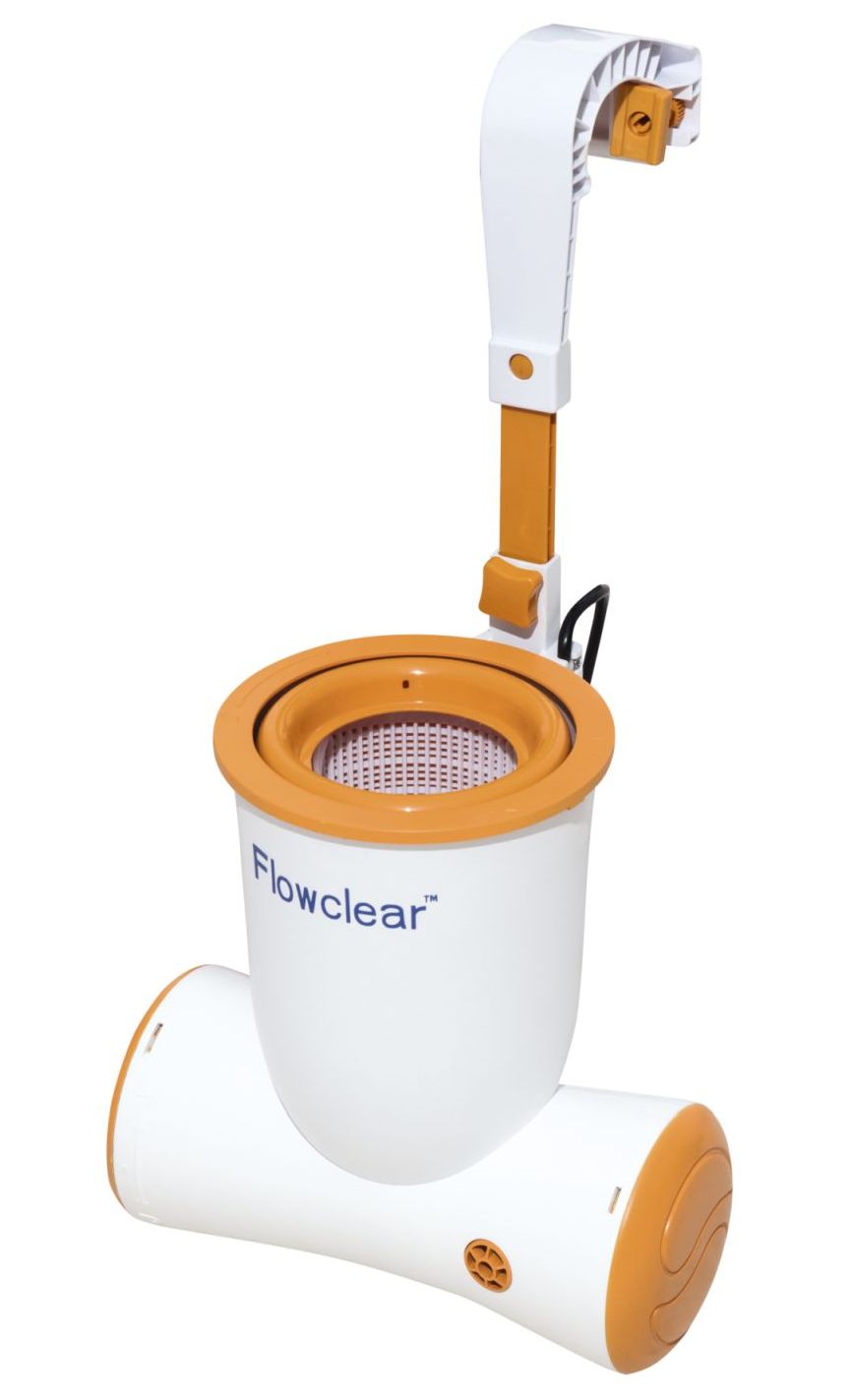 Filtračné čerpadlo SKIMATIC využíva napájanie 12 V prostredníctvom izolovaného transformátora, na inštaláciu filtrácie SKIMATIC nie je potrebná žiadna hadica ani adaptéry - stačí ju pripevniť na okraj bazéna.