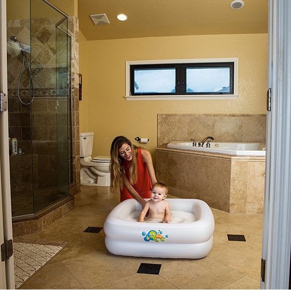 Nafukovací bazén/vaňa pre deti sa skladá z dvoch samostatne nafukovacích častí. Každá časť má bezpečnostný ventil, ktorý zabraňuje úniku vzduchu. Nafukovacie dno bazéna (dno) zabraňuje nekontrolovanému posúvaniu dieťaťa a je tiež veľmi pohodlné.