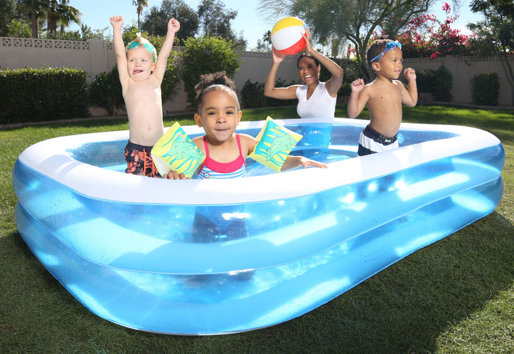 Nafukovací obdĺžnikový bazén vhodný do každej záhrady, odolný a zároveň bezpečný.