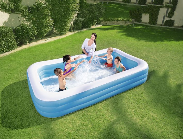 Nafukovací obdĺžnikový bazén vhodný do každej záhrady, odolný a zároveň bezpečný.