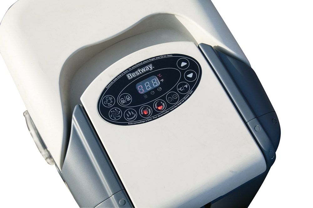 Hlavná riadiaca jednotka zabezpečuje všetky prevádzkové funkcie vírivky, a to výkonnú kartušovú filtráciu, digitálny prietokkompresora na napúšťanie a následné dodávanie vzduchu a masážnych trysiek.