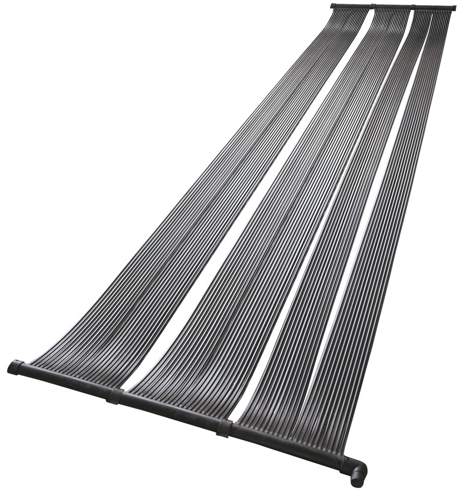 Systém solárnych kolektorov sa pomocou hadíc pripojí k filtračnej pumpe (odtok vody) a bazénu (prítok vody). Prietokom v solárnych paneloch sa voda zahreje a vracia sa späť ohriata do bazéna. Design solárnych panelov bol navrhnutý tak, aby k ohrevu vody dochádzalo pomocou čo najväčšej plochy. Ohrev vody týmto spôsobom je veľmi efektívny a samotný ohrev vody je bez nákladov. Solárny panel je vyrobený z TPE (termoplastický elestomer) a PE (polyethylén) materiálu, nepodlieha korodovaniu a ničeniu dôsledkom pôsobenia hrdzei. Solárne panely sú obojstranné, čo zvyšuje ich životnosť.