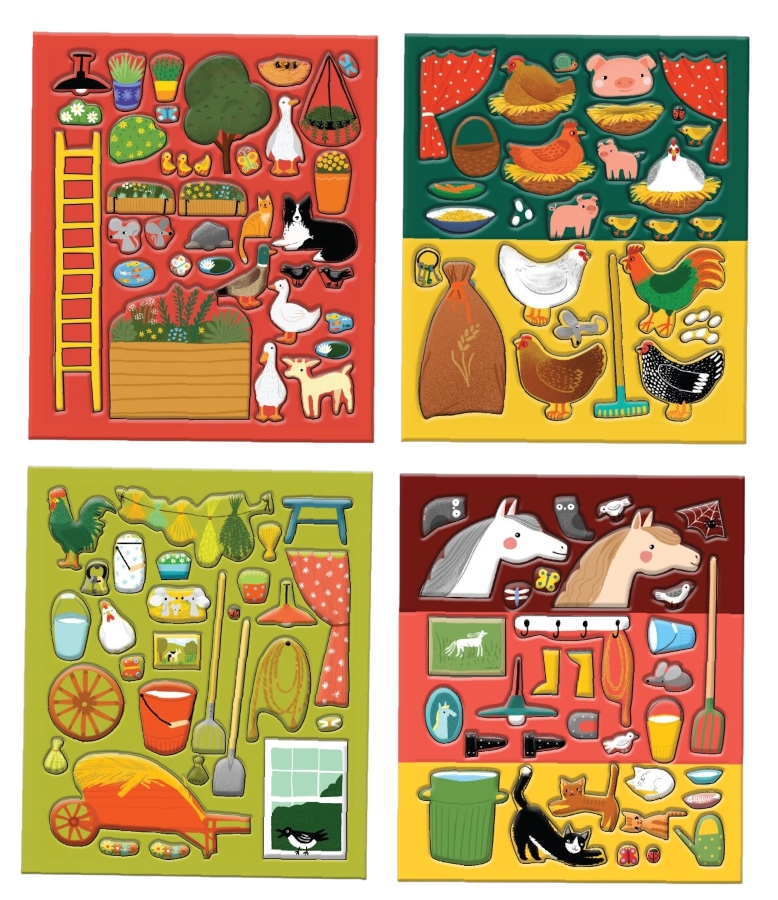 Deti si rozvíjajú jemnú motoriku a zároveň si užijú veľa zábavy! Opakovane použiteľné 3D penové samolepky. Súprava krásnych samolepiek a hracieho 3D kartónového domčeka s motívom farmy. Samolepky sa lepia na hladký povrch bez použitia lepidla. Dajú sa preto opakovane použiť a znova nalepiť na hraciu plochu alebo na rôzne hladké miesta. Skvelá aktivita na vytvorenie vlastného zábavného sveta.