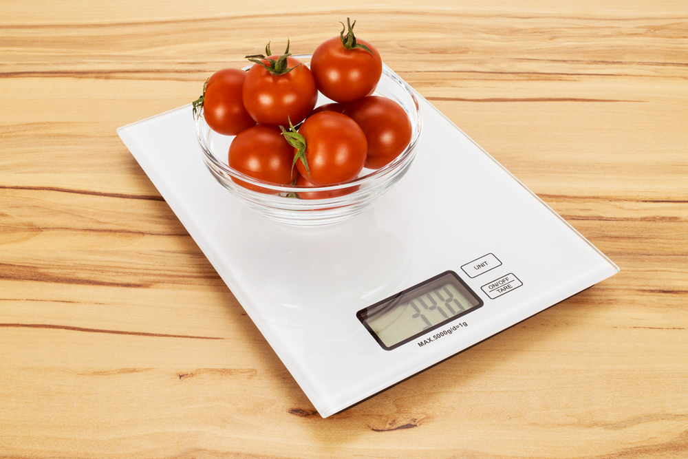 Kuchynská digitálna váha s LCD displejom, maximálnym zaťažením 5 kg a funkciou váženia TARA.