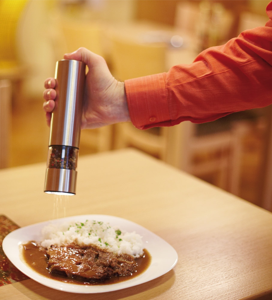 Elektrický mlynček sa veľmi ľahko ovláda jednou rukou, vďaka čomu je veľmi praktický priamo pri varení, druhá ruka zostane vždy voľná na miešanie jedla. Stlačením tlačidla uvediete mlynček do prevádzky, zároveň sa rozsvieti kontrolka.V spodnej časti elektrického mlynčeka sa nachádza koliesko na nastavenie hrubosti mletia, od hrubého až po veľmi jemné.