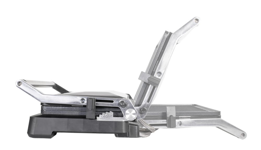 Vďaka konštrukcii, ktorá umožní otvorenie na 180°, môžete gril používať nielen ako kontaktný, ale aj ako otvorený BBQ/stolový gril.