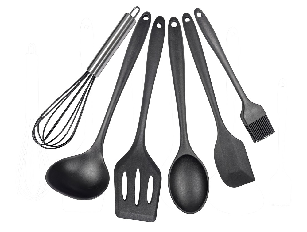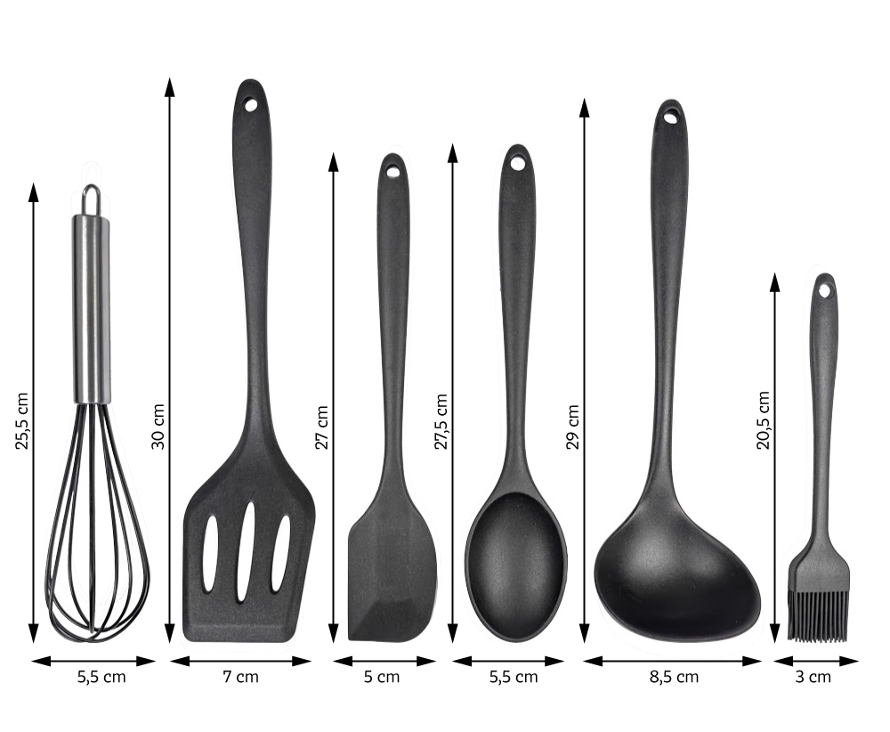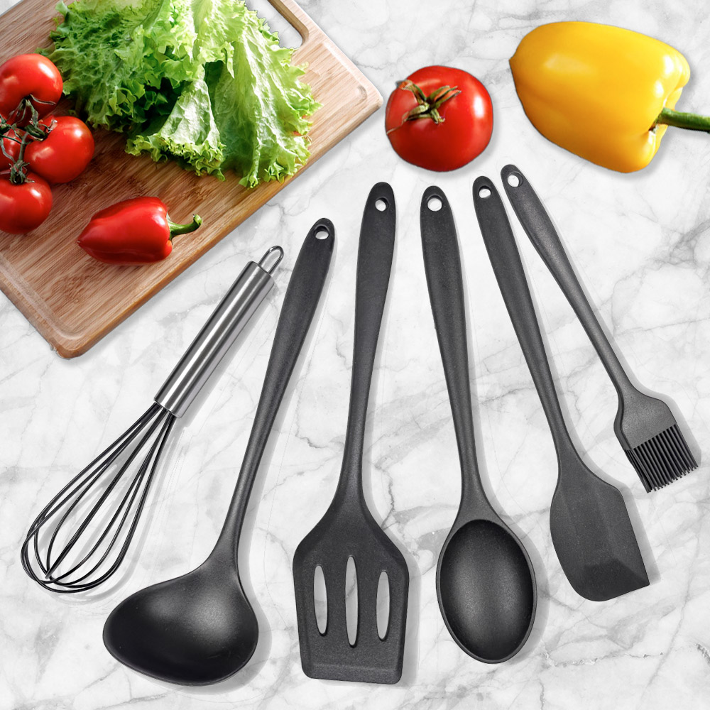 Vybavte svoju kuchyňu touto šesťdielnou sadou náčinia z vysoko kvalitného čierneho silikónu: