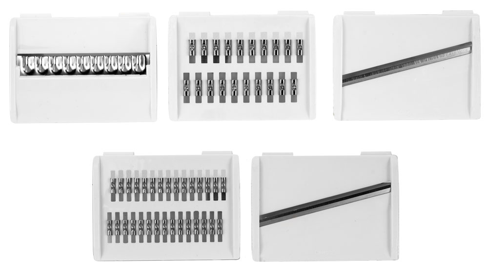 - 5 vymeniteľných nástavcov (1,5 mm plátok, 2,5 mm plátok, mriežka, 2 mm pásiky, 3 mm pásiky)
