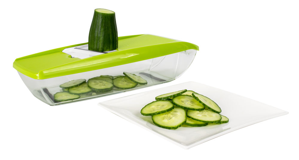 - rýchlo a rovnomerne krája ovocie a zeleninu s minimálnou námahou