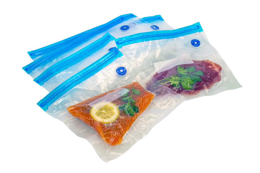Vrecko jednoducho uzavrite prejdením prsta po zips uzáveru. Vzduch vysajete z vrecka cez zabudovaný ventilček stlačením jediného tlačidla. Vrecká je možné umyť a použiť opakovane. V sáčkoch sú potraviny uchované čerstvé až 5 krát dlhšiu dobu ako pri použití bežných mikroténových sáčkov. Vrecká je možné umyť a použiť opakovane. Vrecká sú vhodné aj na varenie metódou sous-vide až do 85 °C.