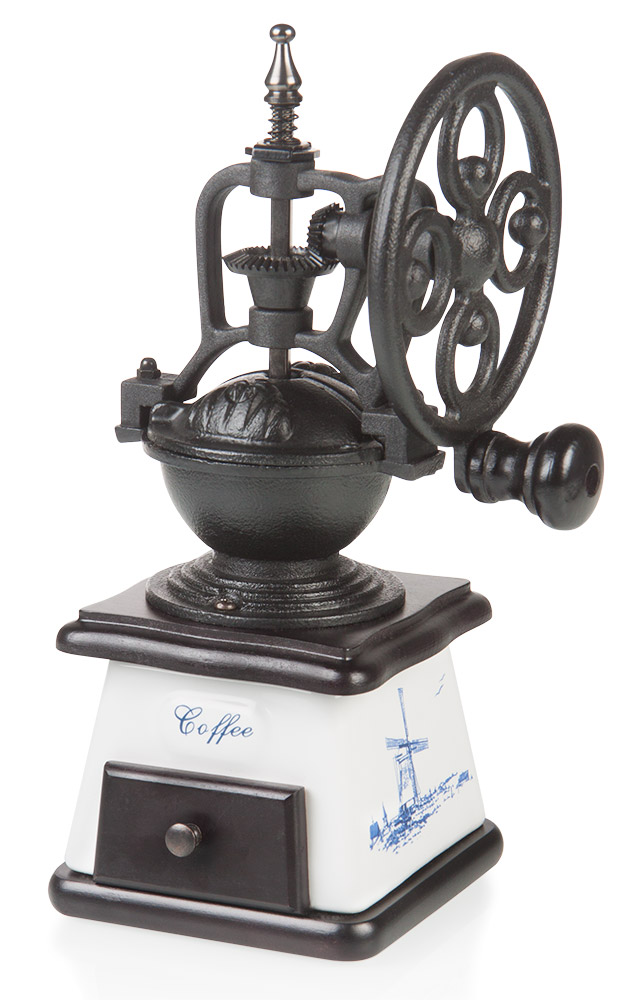 Ručný mlynček na zrnkovú kávu v retro štýle s nastaviteľnou hrubosťou mletia.