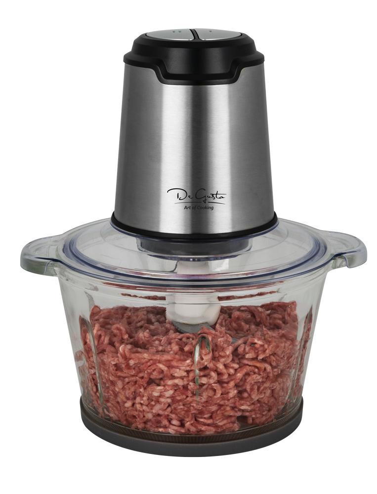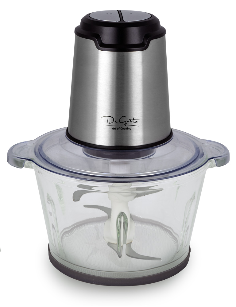 Multifunkčný sekáčik potravín so štyrmi nožmi z nehrdzavejúcej ocele, 350 W, sklenená nádoba s objemom 1,8 l.