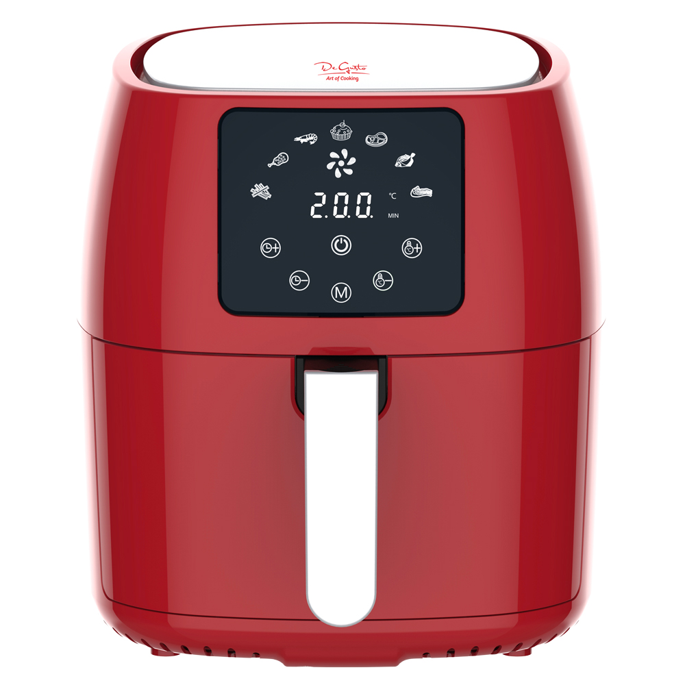 Teplovzdušná fritéza s objemom 3,5 litra, digitálny ovládací panel, farba červená. Zdravšia alternatíva k vyprážaným jedlám.