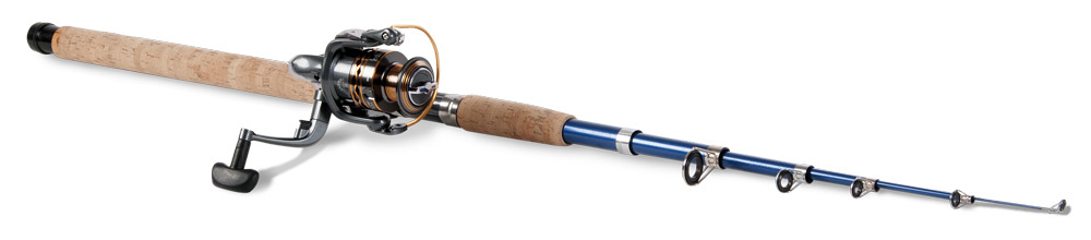 Rybárska súprava na sladkovodný rybolov. Sada obsahuje univerzálny teleskopický prút a navijak.
