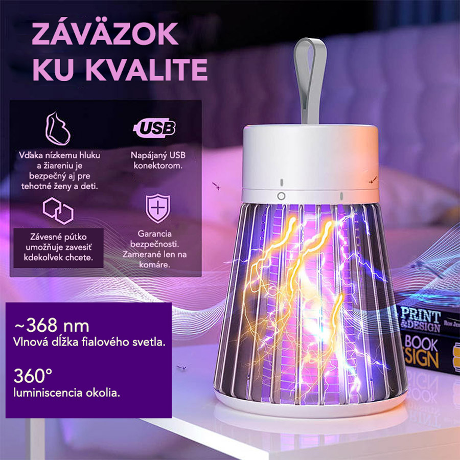 Elektrický bezdrôtový lapač hmyzu. USB dobíjanie, funkcia lampičky.