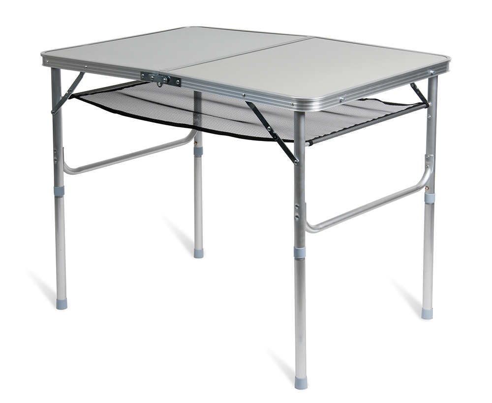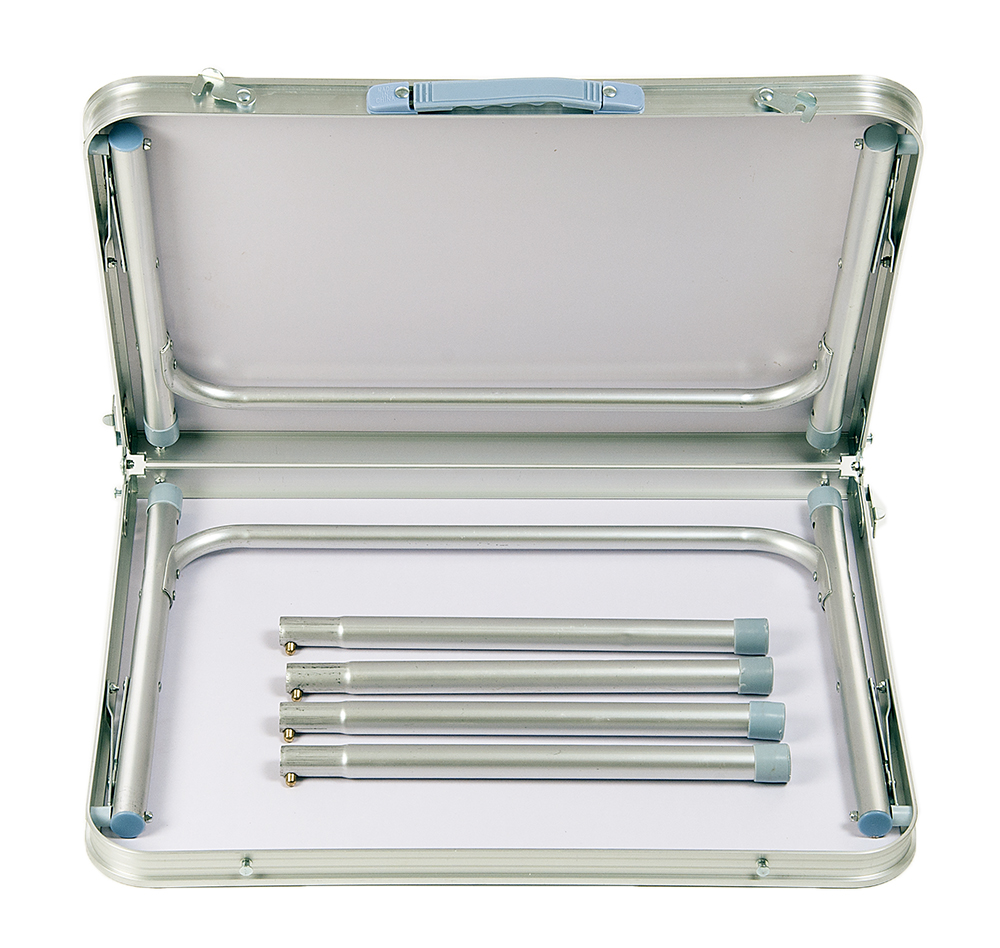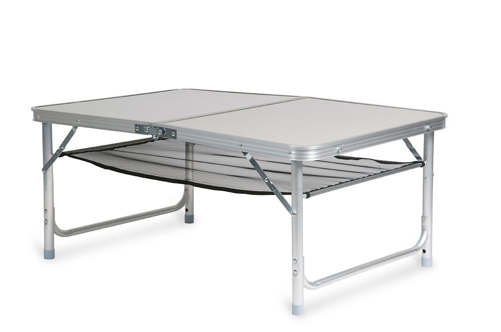 Stabilný kempingový skladací stolík s hliníkovým rámom a konštrukciou. Kempingový stolík je ideálny na turistiku, kempovanie a iné letné outdoorové aktivity. Kempingový stolík sa zloží na polovicu a vytvorí kufor, ktorý sa dá pohodlne prenášať.
