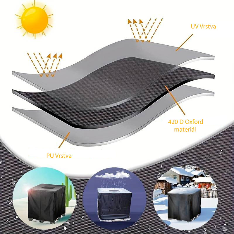 Vodeodolný UV ochranný kryt na IBC kontajner 1000 l. Farba čierna, rozmer 120 x 100 x 116 cm.