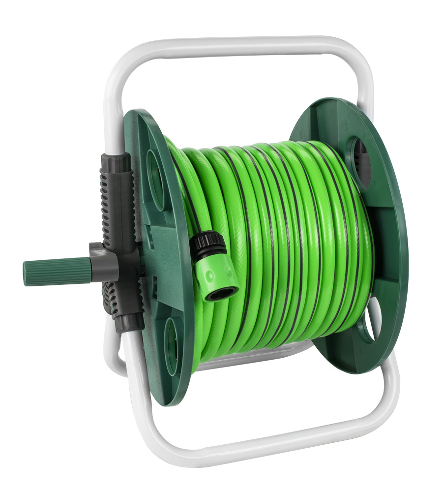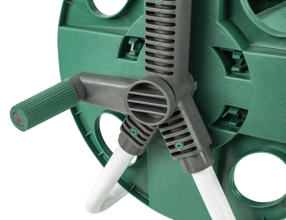 Ručný prenosný bubon na záhradnú hadicu a stojan na záhradnú hadicu. Úsporné uskladnenie až 35 metrov hadice.