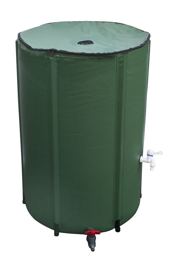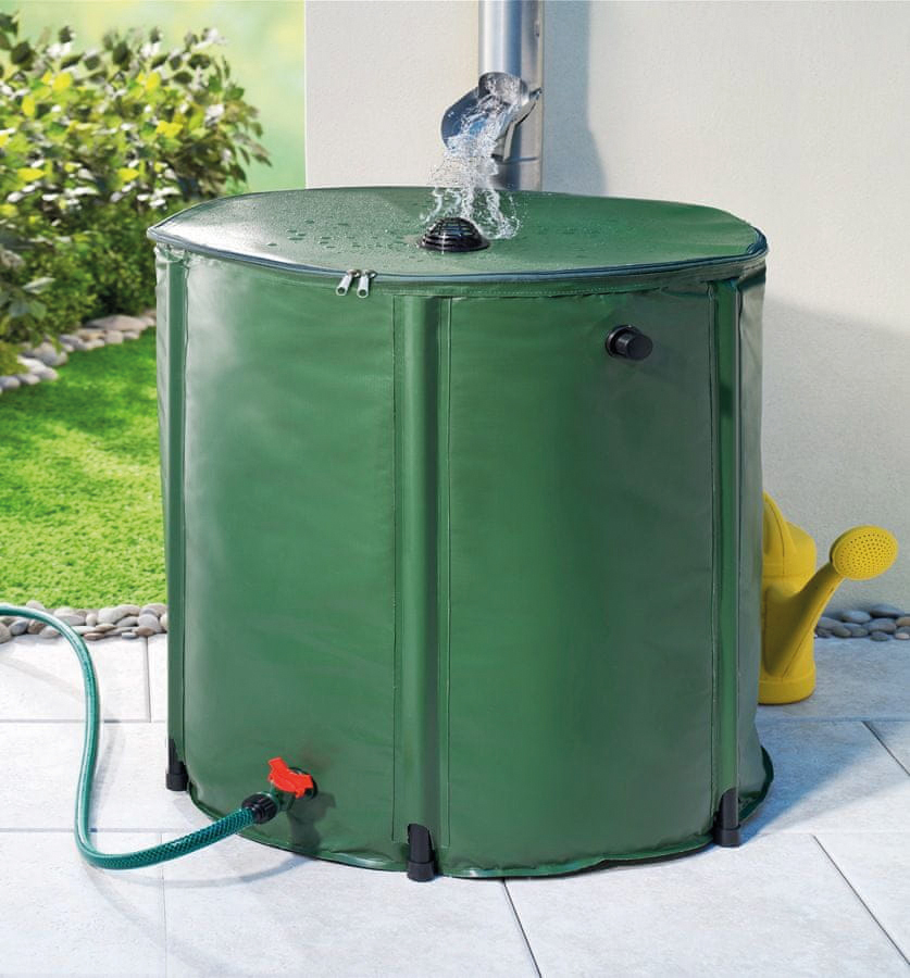 Skladacia nádrž vhodná na zhromažďovanie a skladovanie dažďovej vody a jej následné použitie na polievanie záhrady.