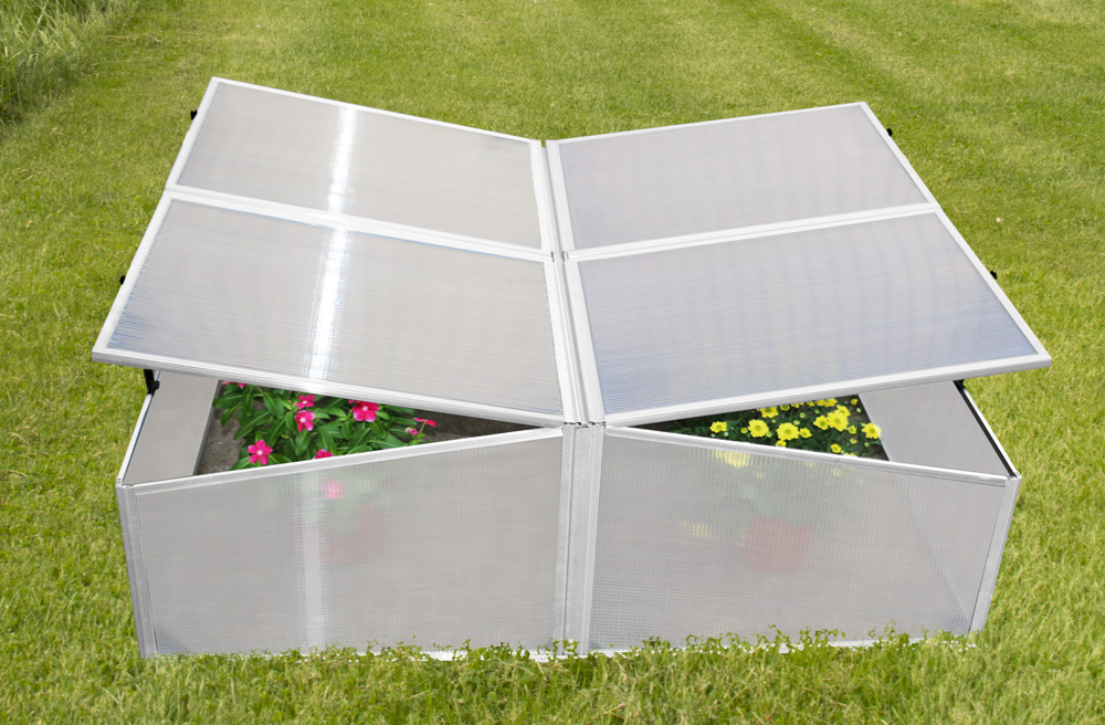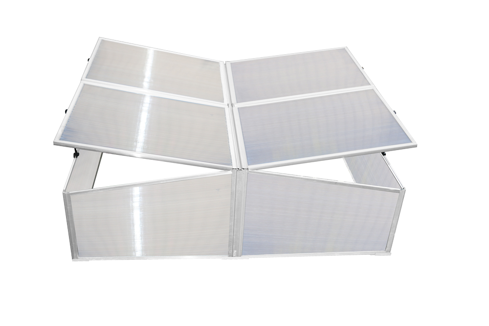 Polykarbonátový štvorkrídlový skleník určený na predpestovanie sadeníc, pestovanie zeleniny alebo zakladanie rastlín.