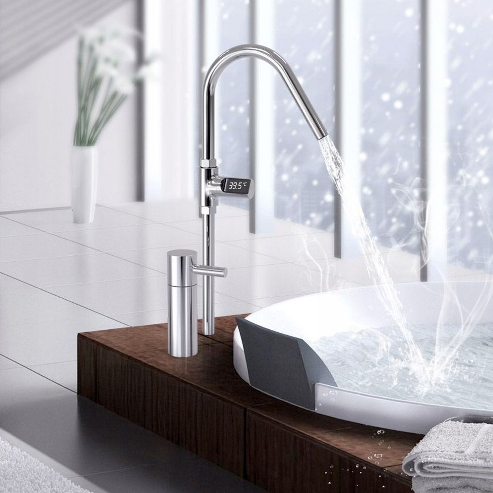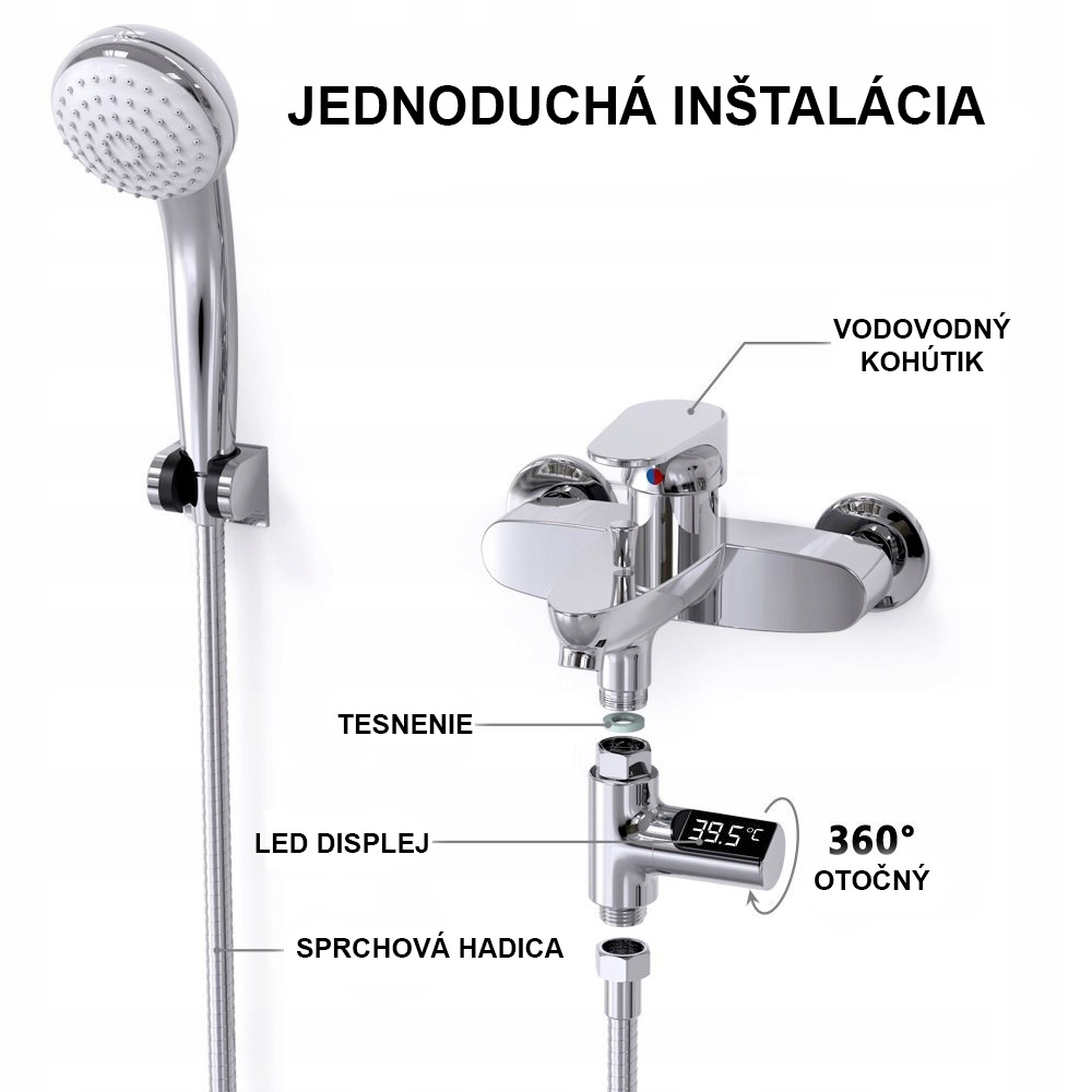 Prietokový teplomer je vhodný na reguláciu teploty vody v sprche, vani alebo pri umývadle. Digitálny prietokový teplomer Vám uľahčí kontrolu teploty pri sprchovaní mininiek, detí a seniorov.