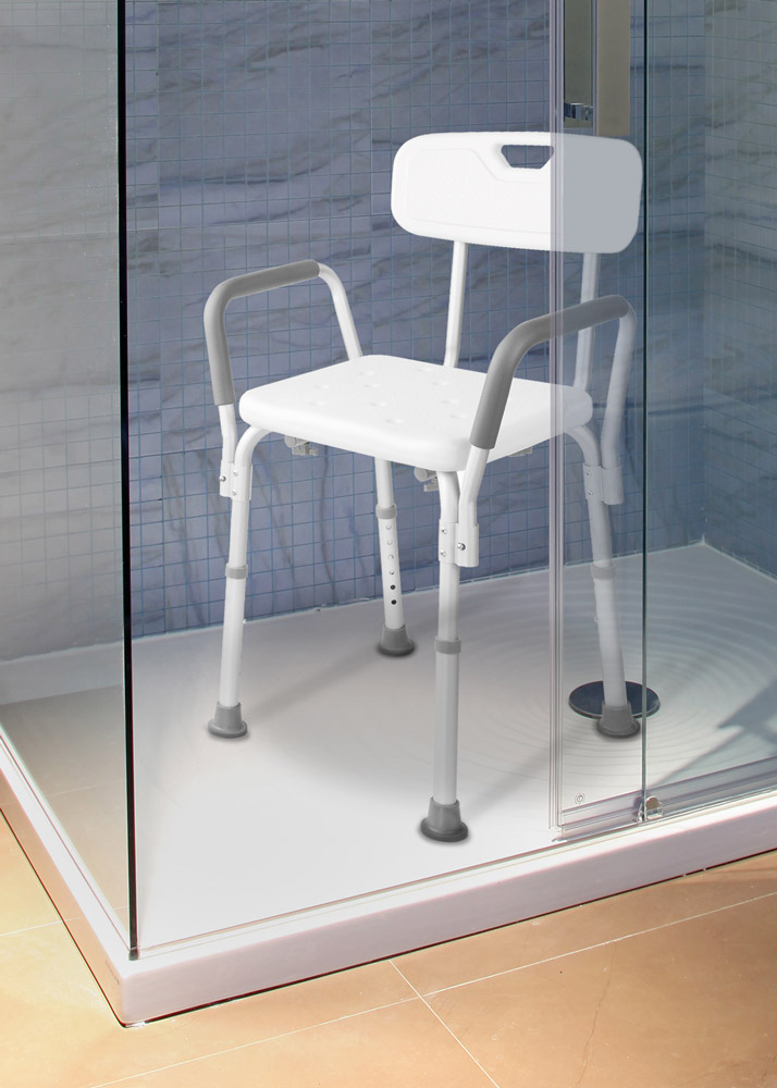 Kúpeľňová stolička s operadlom a nastaviteľnou výškou sedadla je ideálna pre starších ľudí a osoby so zníženou pohyblivosťou.