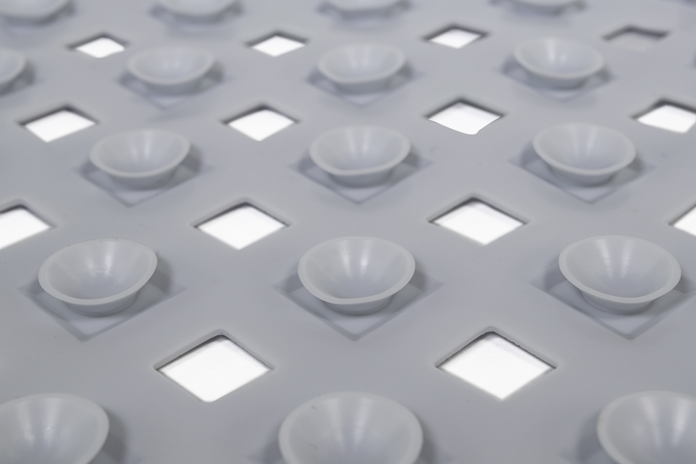 Podložka je na zadnej strane vybavená prísavkami na dokonalé uchopenie, vďaka ktorým podložka zostane na mieste, možno ju ľahko odstrániť a znova pripevniť. Otvory zabezpečujú plynulý odtok vody. Po použití stačí opláchnuť v teplej vode a nechať uschnúť.