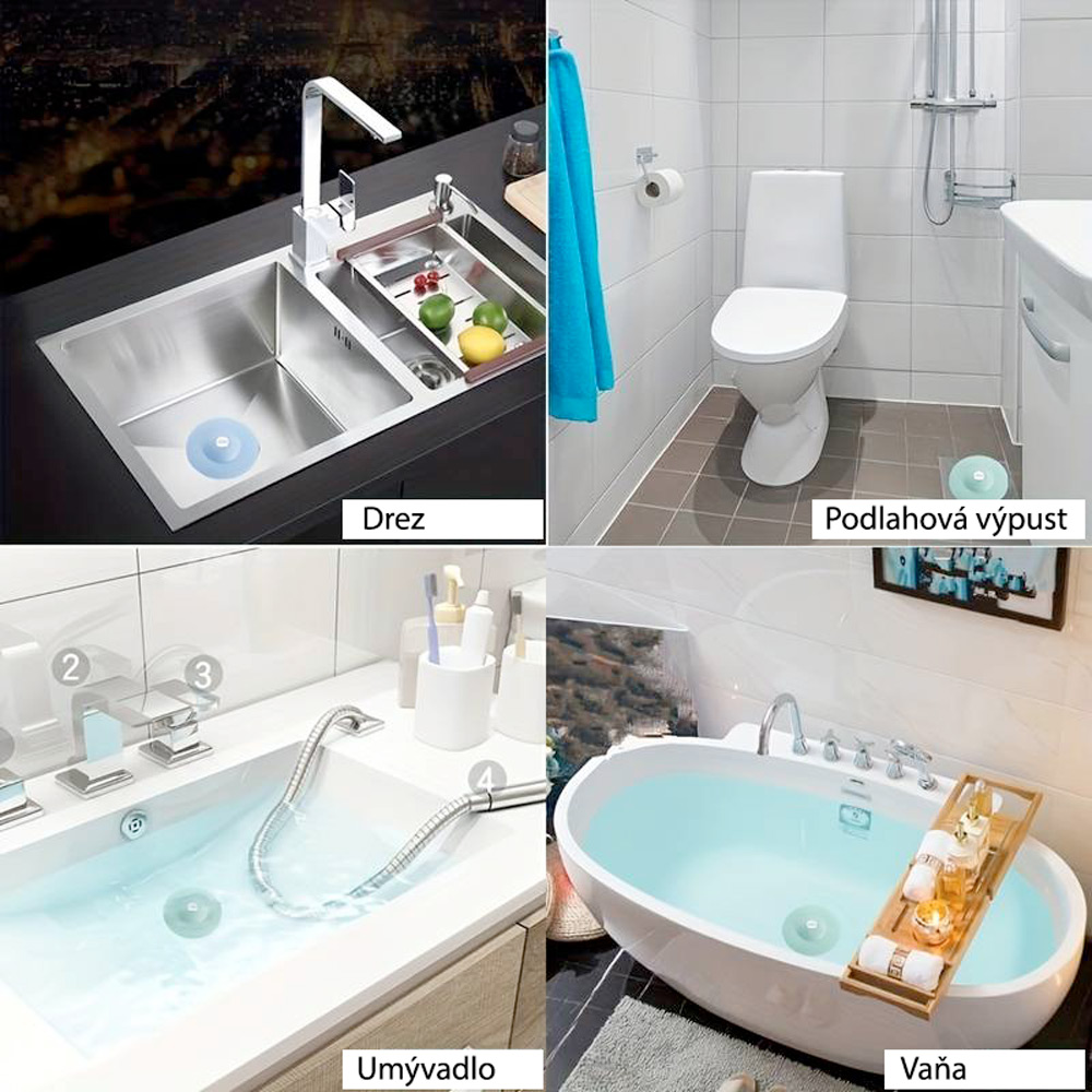 Praktická dvojúčelová zátka/odlučovač nečistôt do každej domácnosti. Zátka na uzatvorenie odtoku vody a sitko na zachytávanie nečistôt.