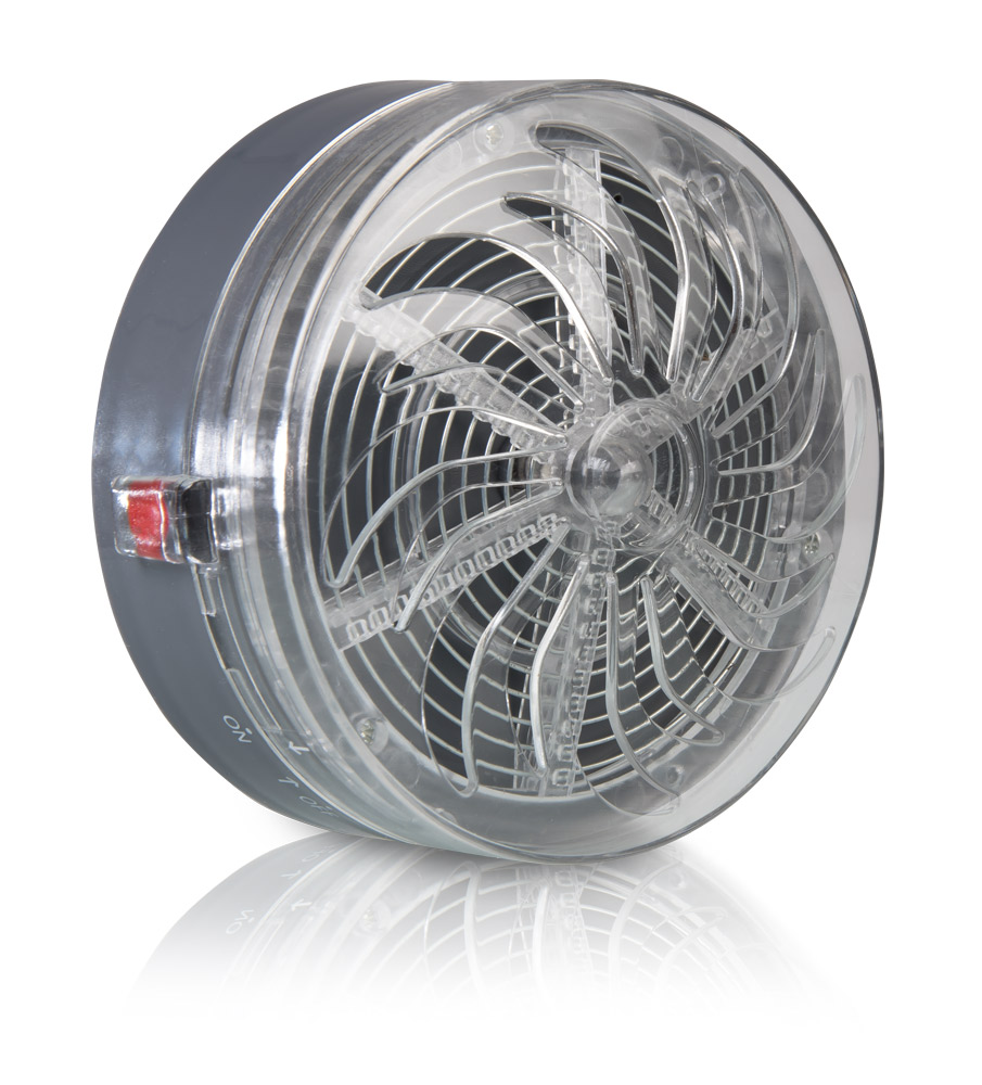 Prenosný lapač lietajúceho hmyzu. Nabíja sa cez deň, LED svetlo láka hmyz v noci.