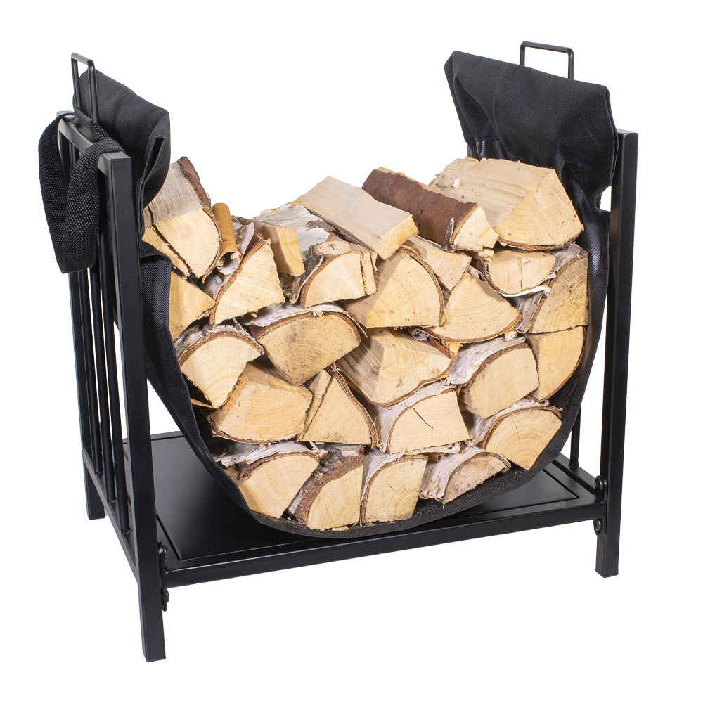 Stojan na palivové drevo s nosičom zabezpečuje poriadok a čistotu okolo krbu. Je vhodný pre vnútorné aj vonkajšie krby. Stojan na palivové drevo má priestor na uloženie palivového dreva a navyše praktický nosič z nylonovej tkaniny, ktorý umožňuje jednoduché prenášanie polien ku krbu. Vďaka svojmu čiernemu elegantnému dizajnu je stojan na palivové drevo s nosičom nielen praktický, ale na uskladnenie palivového dreva, ale slúži aj ako dizajnový doplnok interiéru.