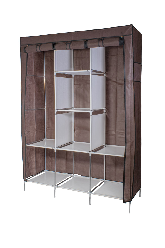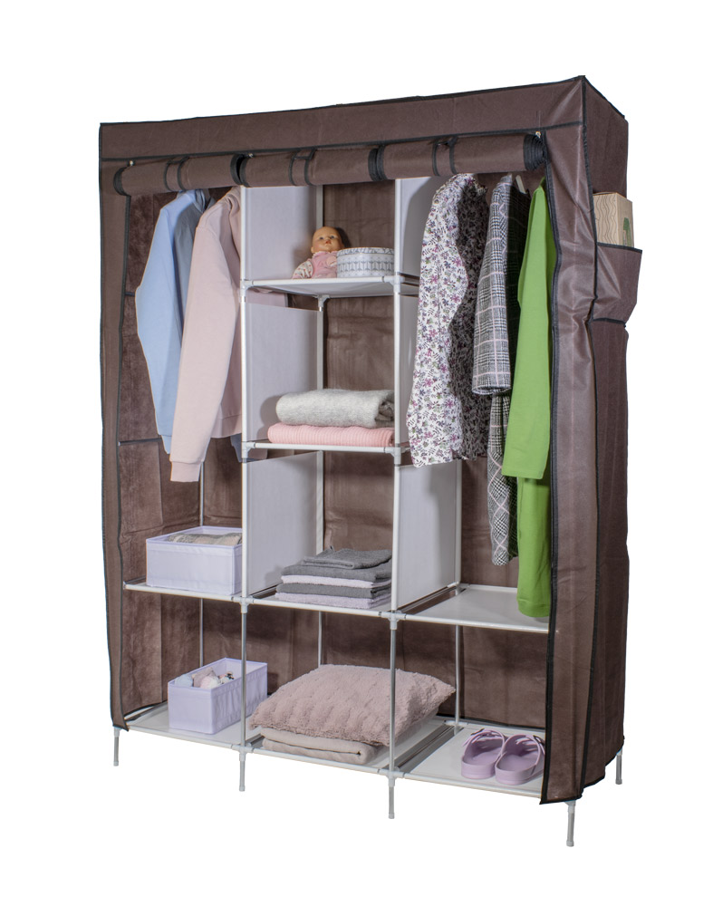 Skladacia textilná skriňa na prehľadné skladovanie vecí (oblečenie, hračky,...). Textilnú skriňu s policami zostavíte behom okamihu, je vyrobená zo vzdušného materiálu, konštrukciu tvorí stabilná oceľová konštrukcia.