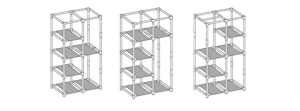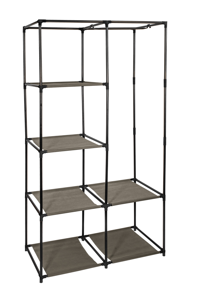 Skladacia textilná skriňa na prehľadné uloženie vecí (oblečenie, hračky,...). Textilnú šatníkovú skriňu s policami možno zostaviť za okamih, je vyrobená zo vzdušného materiálu, konštrukciu tvorí stabilná oceľová konštrukcia.