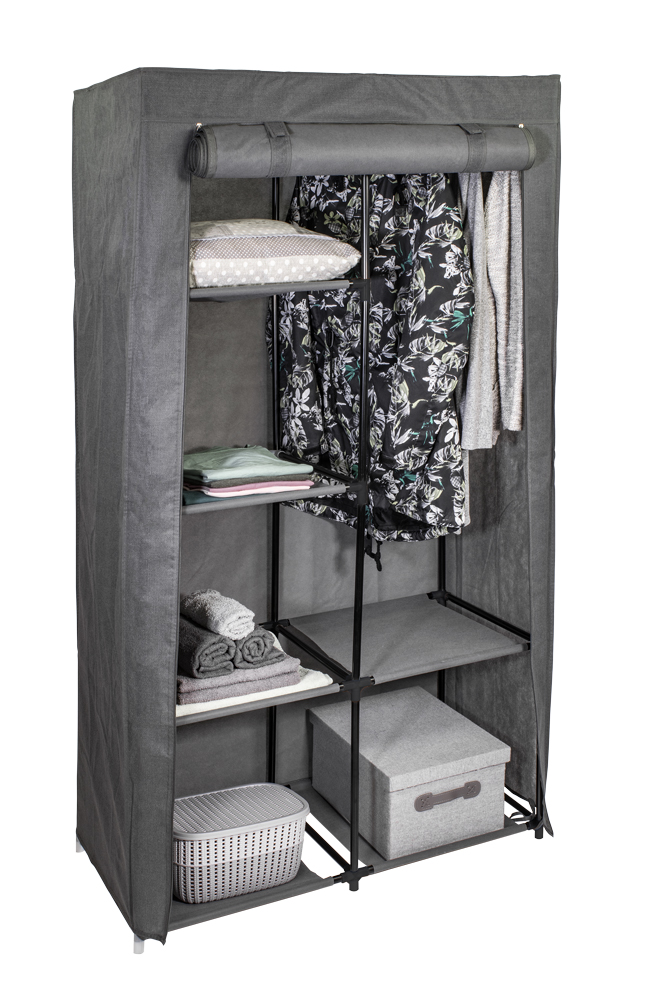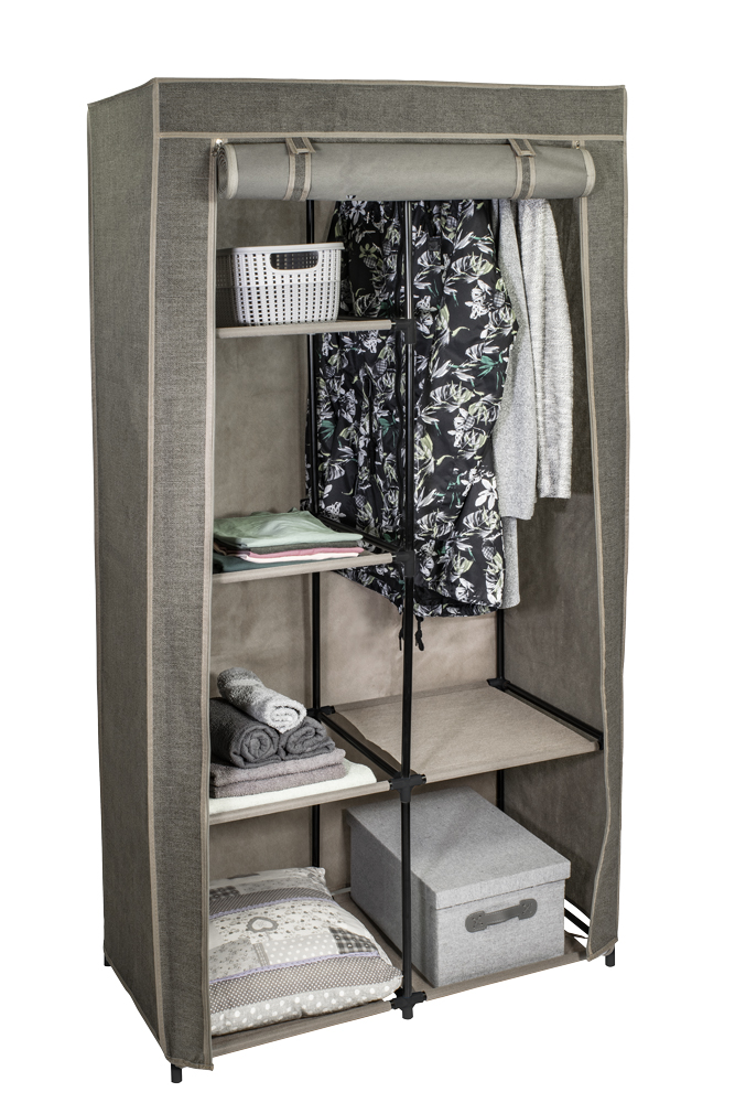 Praktická textilní skříň s policemi pro ukládání oblečení, sezónních věcí apod.
