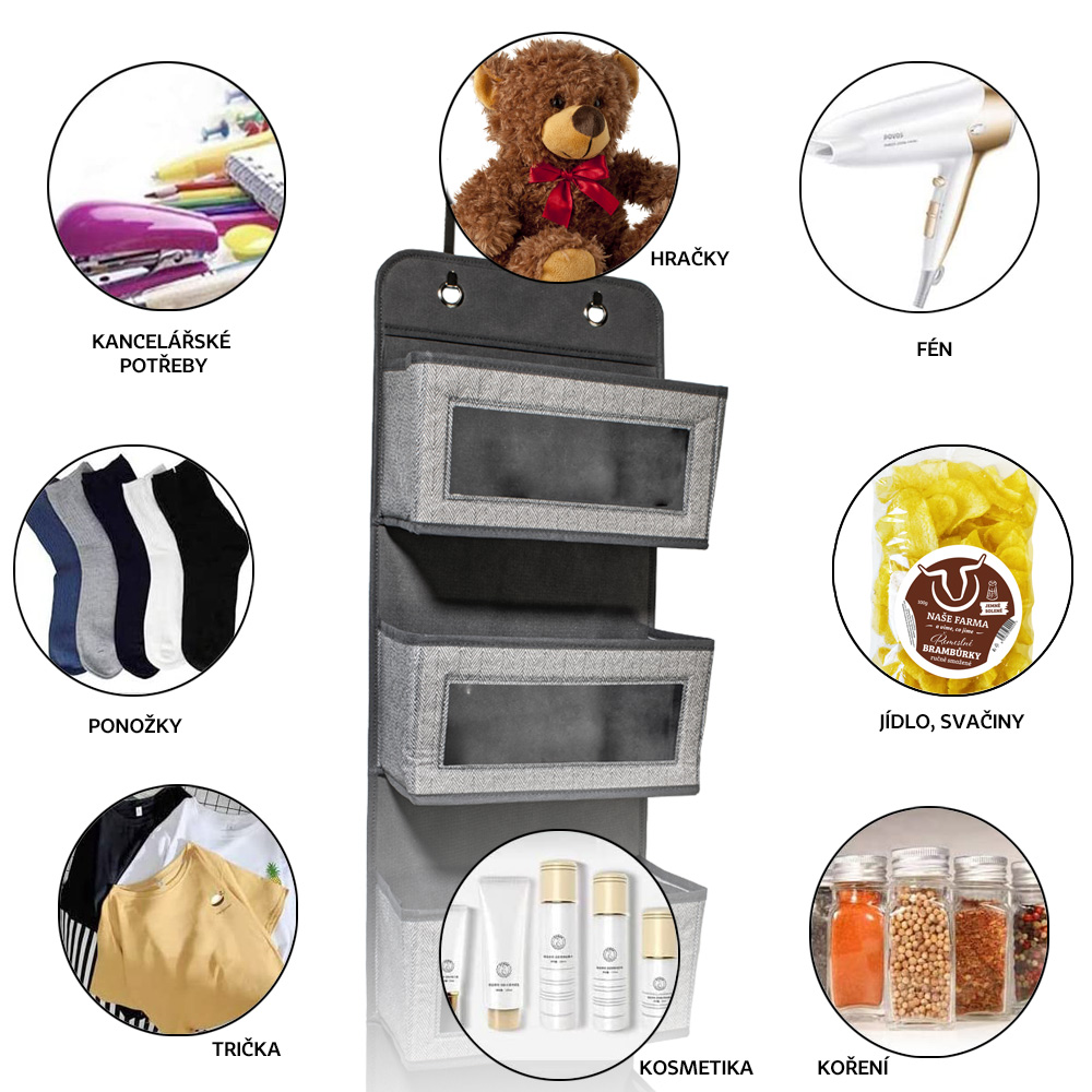 Textilný organizér na zavesenie na dvere, prehľadné uloženie drobností.