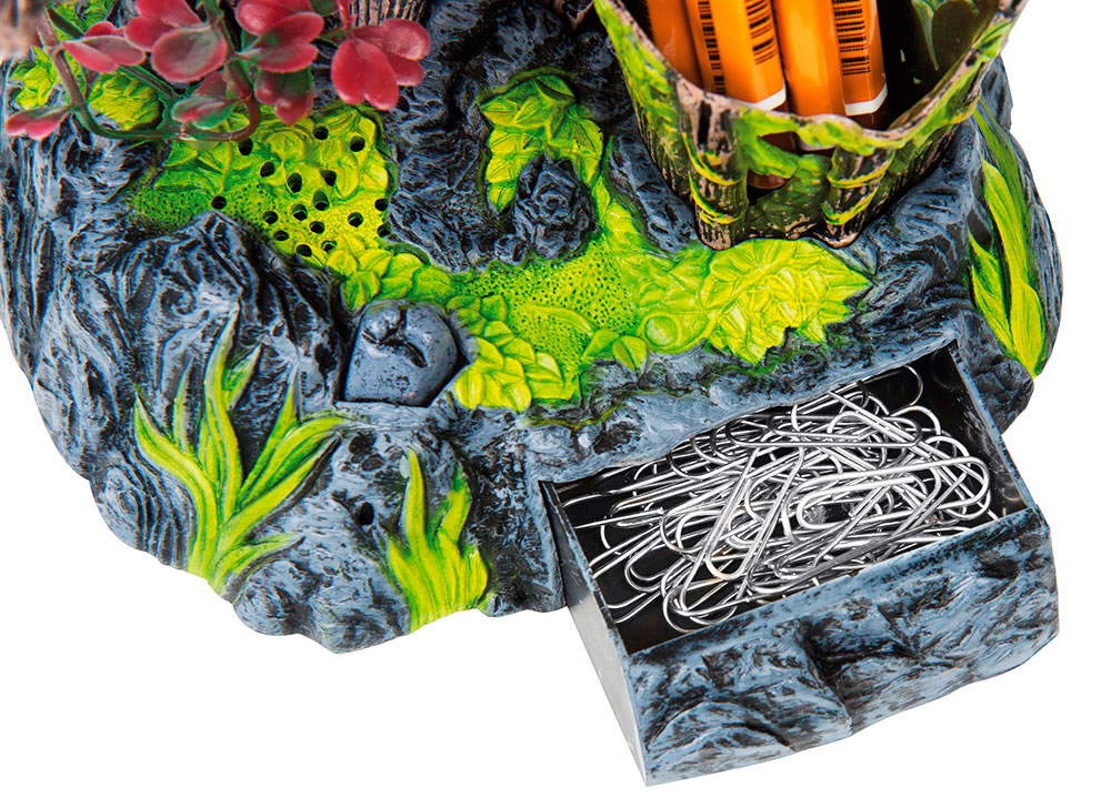 Netradičný a zábavný stojan na ceruzky so zásuvkou na kancelárske sponky.