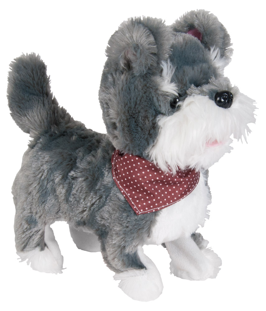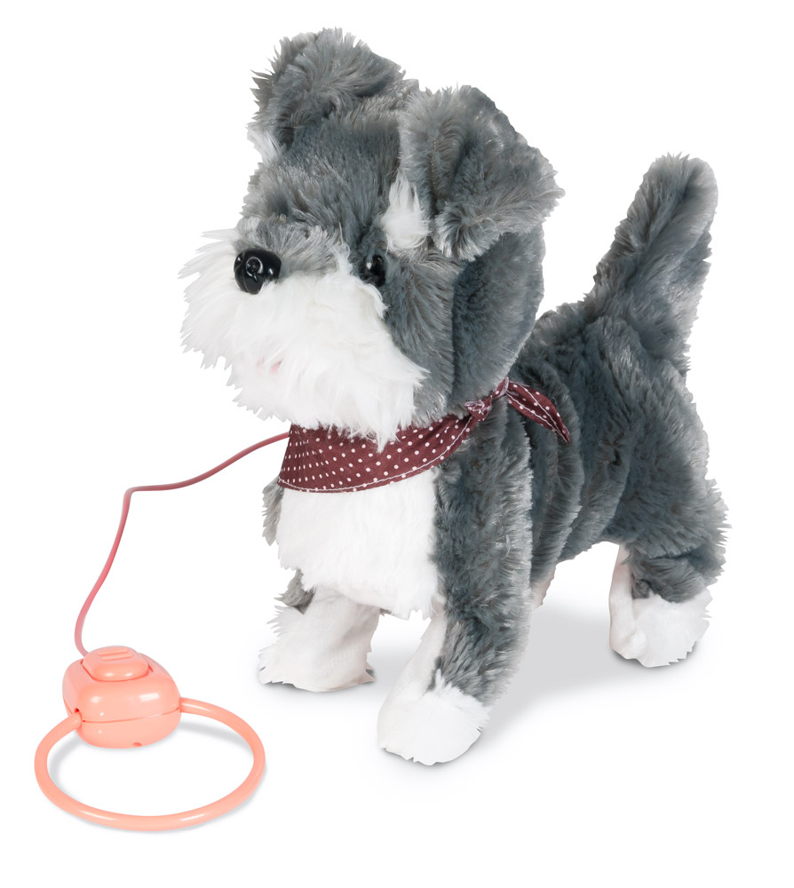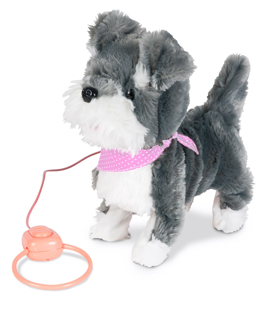 Plyšové šteniatko na vodítku. Šteniatko je vyrobené z mäkkého plyšu, ovláda sa ovládačom na vodítku - chodí, hýbe chvostom, vydáva zvuky.