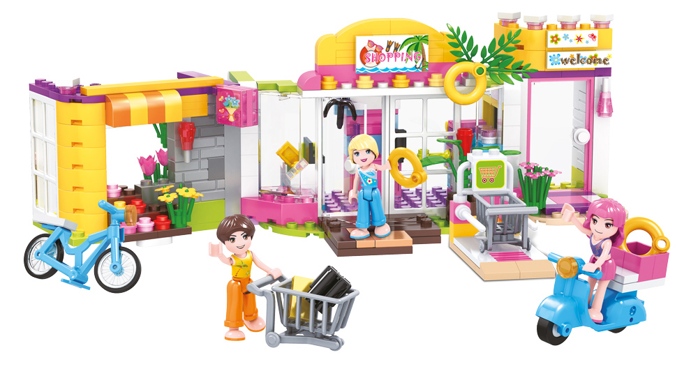 Stavebnica pre dievčatá - obchod, rozvíja zručnosť a predstavivosť detí. 376 dielov.