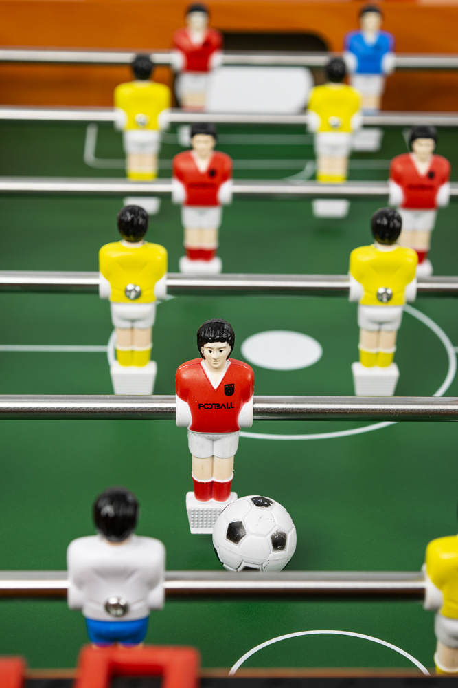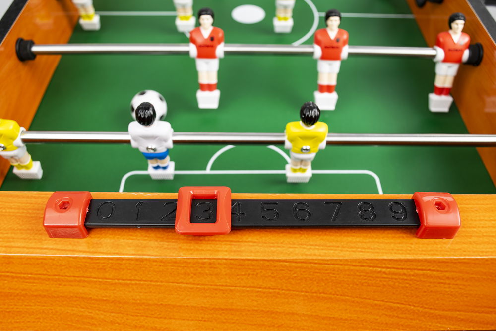 Mini stolný futbal pre dvoch hráčov. Obsahuje počítadlo a 2 loptičky.