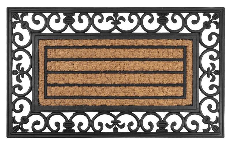 Praktická obdĺžniková rohožka na použitie pred vonkajšími dverami. Kombinácia gumy a kokosu.