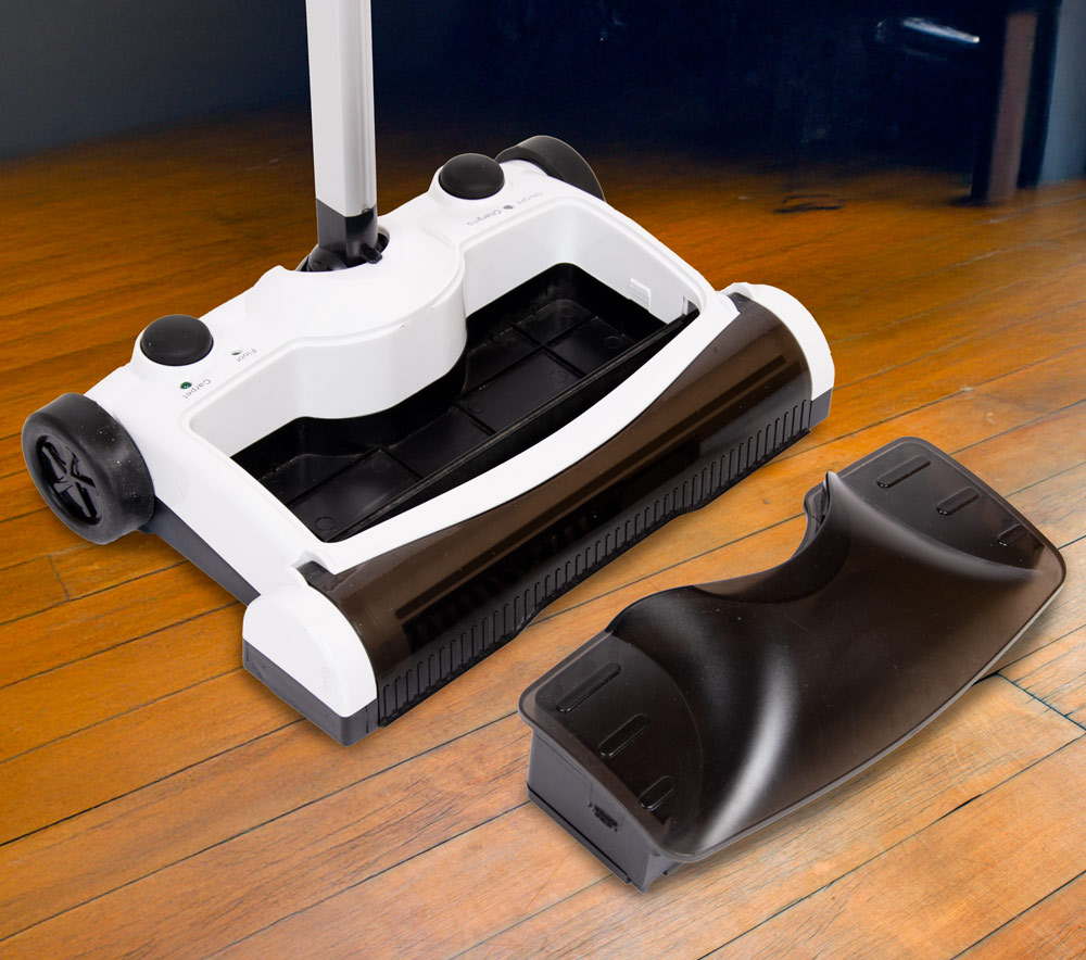 Super výkonný zametač, nepotrebujete žiadne káble, vrecká ani filtre. Má silné rotujúce kefy, ktoré priľnú k podlahe a odstránia nečistoty aj z ťažko dostupných miest. Vyberateľná priehľadná nádoba na nečistoty a prach. Ideálny na akékoľvek povrchy (linoleum, koberce, plávajúce podlahy atď.).