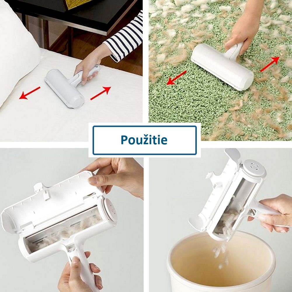 - samočistiaci - vytiahnete s ním všetky chlpy z textilného materiálu a potom stačí nádobu vyprázdniť do koša