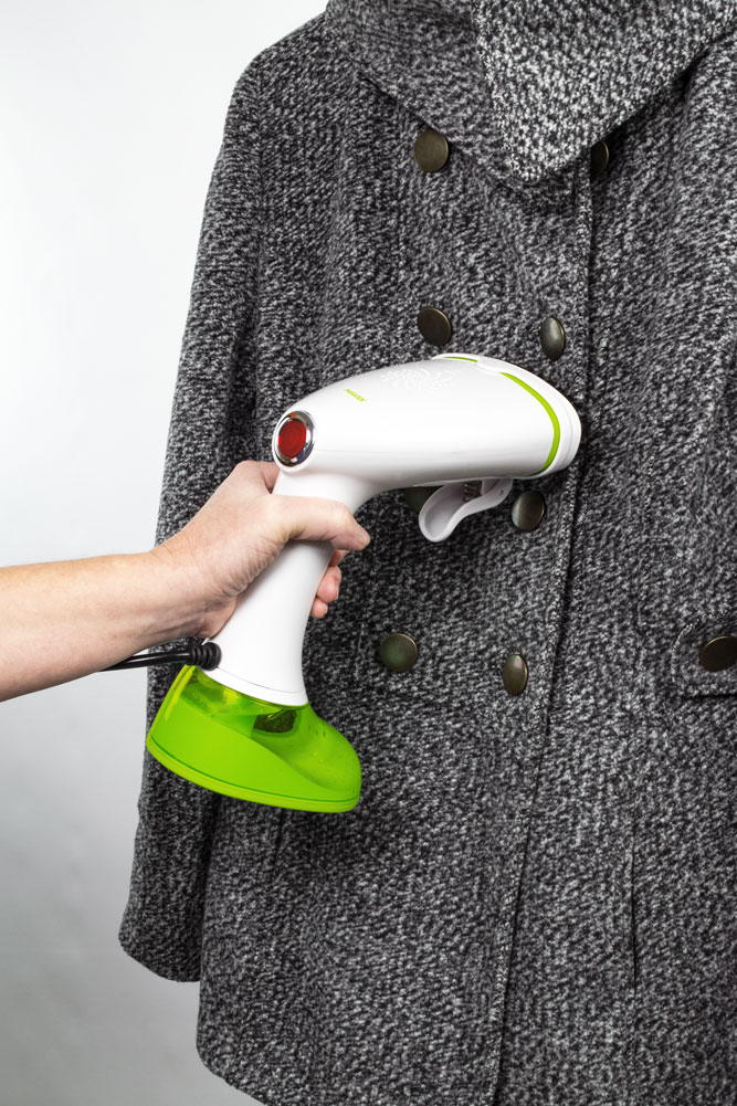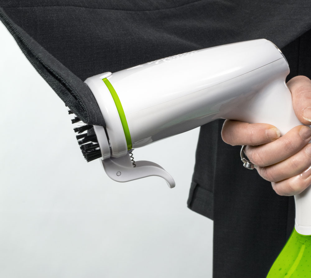 Ručný naparovač odevov SteamPro na jednoduché, rýchle a bezproblémové žehlenie záhybov na oblečení bez použitia bežnej žehliacej dosky.