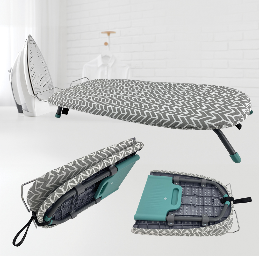 Žehliaca doska je ideálnym pomocníkom ak nemáte doma veľa miesta alebo sa chystáte vyžehliť len jeden alebo dva kúsky. Žehliacu dosku na stôl je možné zložiť a uskladniť do skrine alebo zásuvky, aby ste ušetrili miesto. Ak chcete žehliť, jednoducho ju položíte na stôl.
