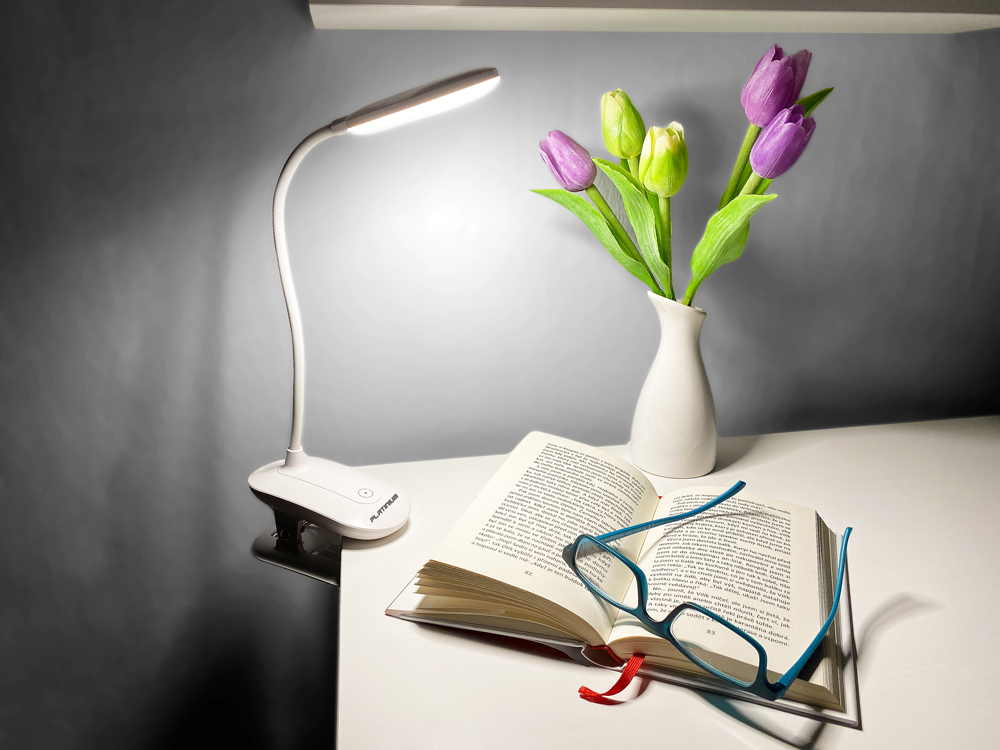 Vysoko úsporná akumulátorová LED lampa s klipom, vhodná na akýkoľvek stôl, nočný stolík alebo komodu, dá sa ohýbať a otáčať podľa potreby. Akumulátorová LED lampa s klipom je vhodná na čítanie, drobnú prácu, štúdium alebo do kancelárie.