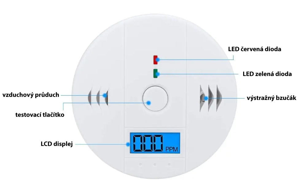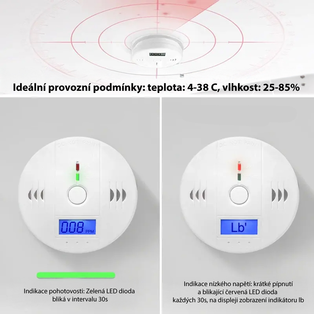 Detektor oxidu uhoľnatého s ukazovateľom PPM - kľúčové vlastnosti a parametre: