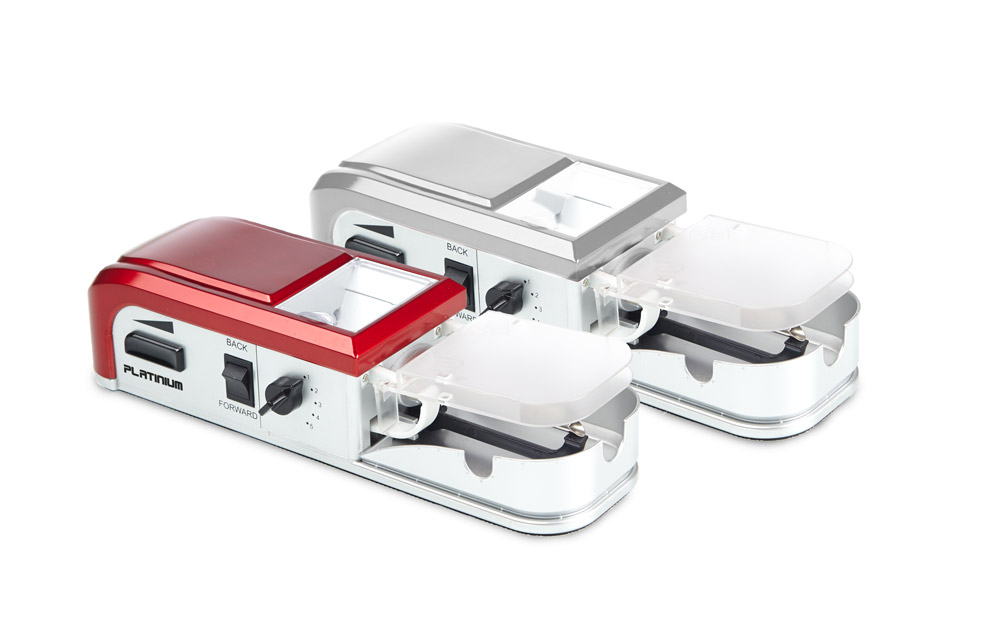 Elektrická plnička cigariet je k dispozícii v 2 farbách: striebornej alebo bordovej