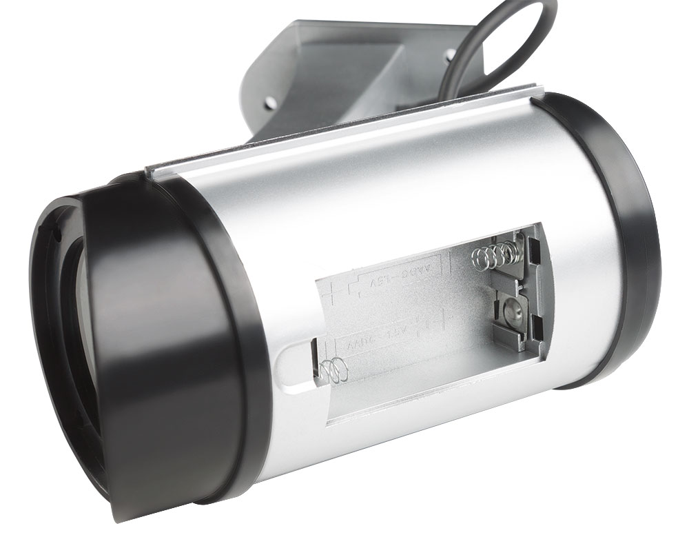 Imitácia bezpečnostnej kamery má veľmi realistický vzhľad, takže nie je možné rozoznať, či ide o atrapu alebo funkčnú bezpečnostnú kameru. Kamera pomáha odradiť zlodejov, vandalov a zvedavých pozorovateľov. Integrovaná blikajúca LED dióda vytvára dojem skutočného monitorovania. Imitácia bezpečnostnej kamery Outdoor je vhodná na použitie v interiéri aj exteriéri.